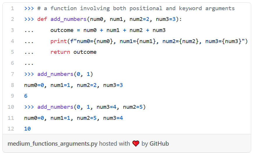 함수 add_numbers에서 num0과 num1은 위치 인자이고 num2와 num3은 키워드 인자입니다. 키워드 인자 간에는 순서를 바꿔도 되지만 키워드 인자와 위치 인자 간에는 순서를 바꿀 수 없습니다. 이제 *args와 **kwargs가 어떻게 동작하는지 예제를 통해 조금 더 자세히 들어가보겠습니다. 우선 아래 두 가지를 알고 있어야 합니다.