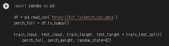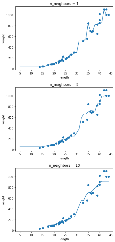 - 이 샘플들의 무게의 평균값을 새로운 농어의 무게로 예측한다.