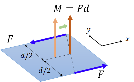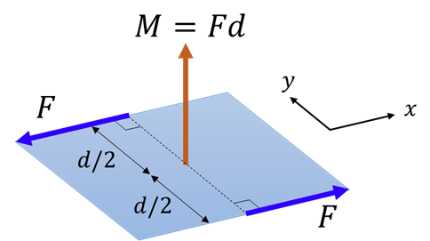 But why? How can it be true? Here’s why. Let us consider two forces $F$ acting on a plane and a resultant moment $M$.
