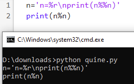 콰인은 자기 자신의 코드를 출력하는 코드이다. 즉, 실행 결과가 자신의 코드와 동일해야 한다.