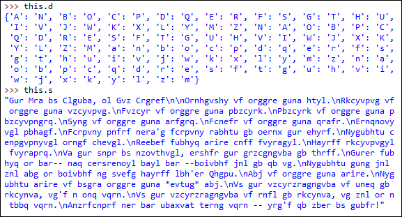 자세히 보니 this.s의 각 문자를 key로 하는 value를 this.d에서 찾으면 zen of python이 나올 것 같군요. 아래의 방법으로 복구할 수 있습니다.