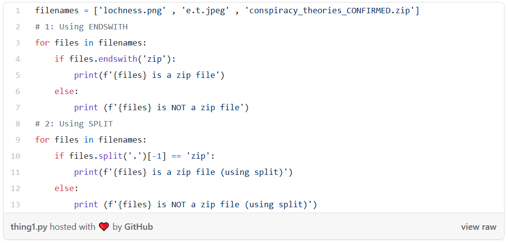 열정적인 학생이라면 str()의 기능을 확인해봤을 것이다. 하지만 초보를 벗어나고 싶다면 str()의 문서도 확인해보자. help(str)로 도움말을, dir(str)로 관련 메서드를 확인할 수 있다. 예를 들어 str 자료형에 endswith()를 쓰면 파일의 타입을 알아내는 코드를 조금 더 유려하게 짤 수 있다.
